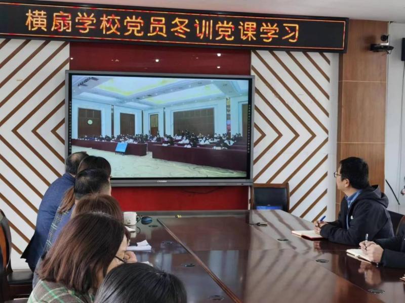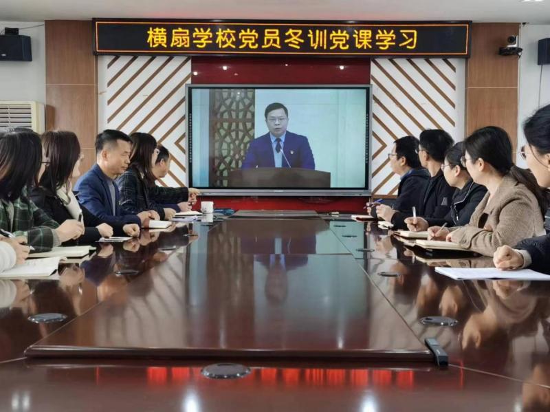 吴江区横扇学校党总支组织党员干部收听收看冬训集中学习党课