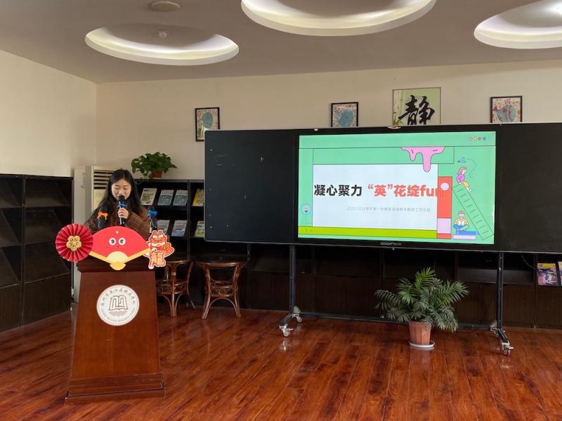 众行致远,研思同行。周霞老师和王超老师分别代表英语和体育教研组上台分享工作经验。周老师从以下几个方面娓娓道来:首先,制定切实可行的教研计划为老师们指明教学研究方向;其次,要潜心深耕于日常教学,精细备课,规范听课,取长补短;最后,深入学习英语课程标准,不断深化小学素质教学研究。