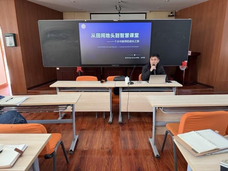 1月16日下午,横扇学校师生阅览室里气氛热烈,一场主题为《从田间地头到智慧课堂——一个乡村教师的成长之旅》的讲座在此精彩开讲。本次活动由朱皓华副校长主持,全体骨干教师、行政人员以及青年教师齐聚一堂,共同聆听青云学校沈峥嵘副校长的精彩分享。