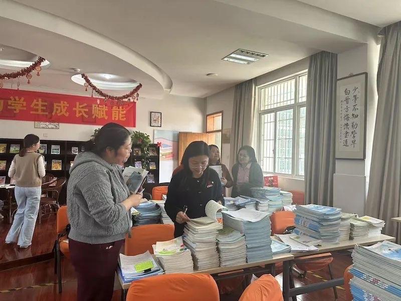听课后,专家领导又细致翻阅了老师们的备课,作业等教学常规资料,分学科对教师的“七认真”工作进行细致地指导反馈。