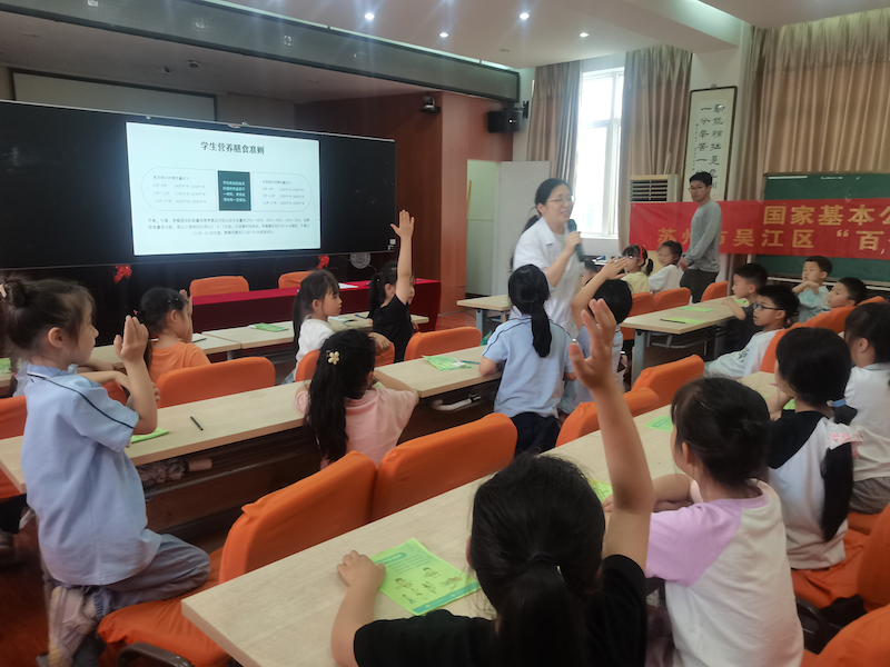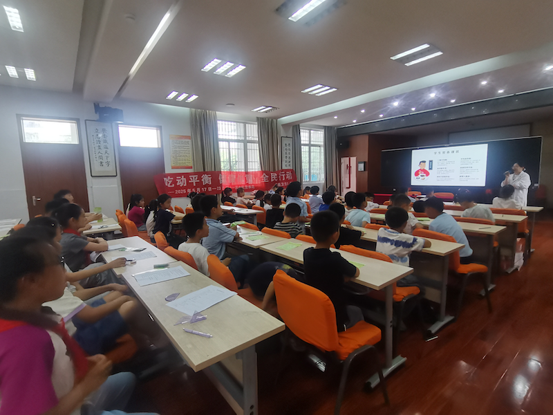 活动开始,医务人员通过悬挂横幅、展板展示、发放宣传资料等各种宣传手段,营造出了良好的宣教氛围。在讲座中,儿科医生还运用生动的案例、直观的数据,详细讲解了合理膳食的构成,让学生明白谷类、蔬菜、水果、肉类、奶制品等各类食物在饮食中的重要性及合理比例。阐述运动对健康体重的影响时,分享了适合学生的运动方式,如跳绳、篮球、慢跑等,以及运动强度和时间的把控,现场解答学生在饮食和运动方面的疑问30余个,学生参与热情高涨,互动频繁。