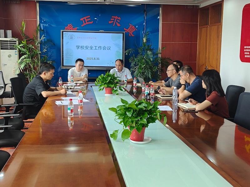 会议由校长计荣明主持。计校长从校园安防、消防安全、食品安全、交通安全、设施设备安全、学生心理健康等六大方面进行详细工作部署,明确各部门责任分工,要求建立"定岗、定人、定责"的安全管理机制。各部门负责人就本领域安全工作重点难点进行交流发言,并共同讨论制定了新学期安全应急预案与隐患排查整改清单。